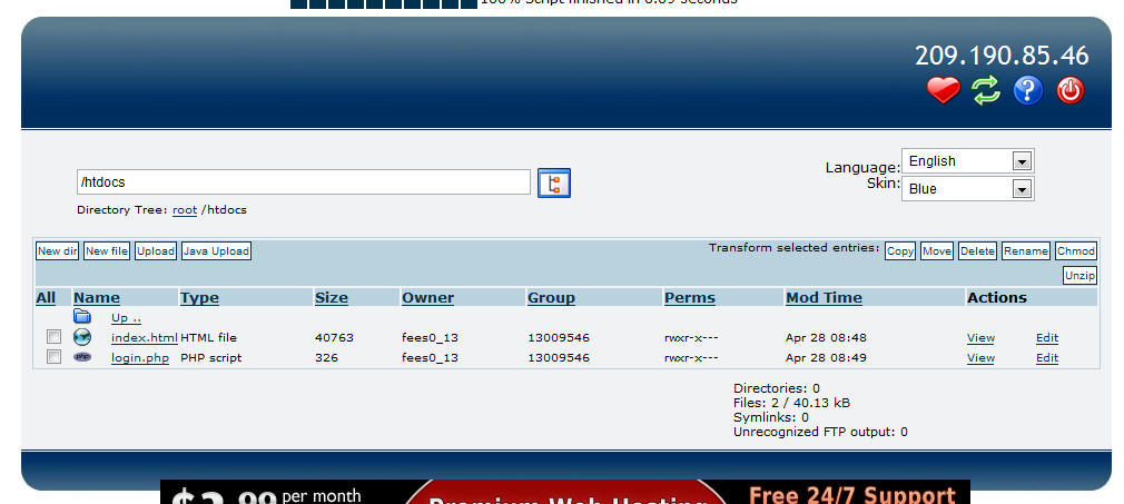 Step-6: Now upload login.php and index.html file to you hosting directory. If it is cpanel account, upload files into file_manager -> public_html and see the attached screen shot, most of the hosting sites, has same kind of UI.